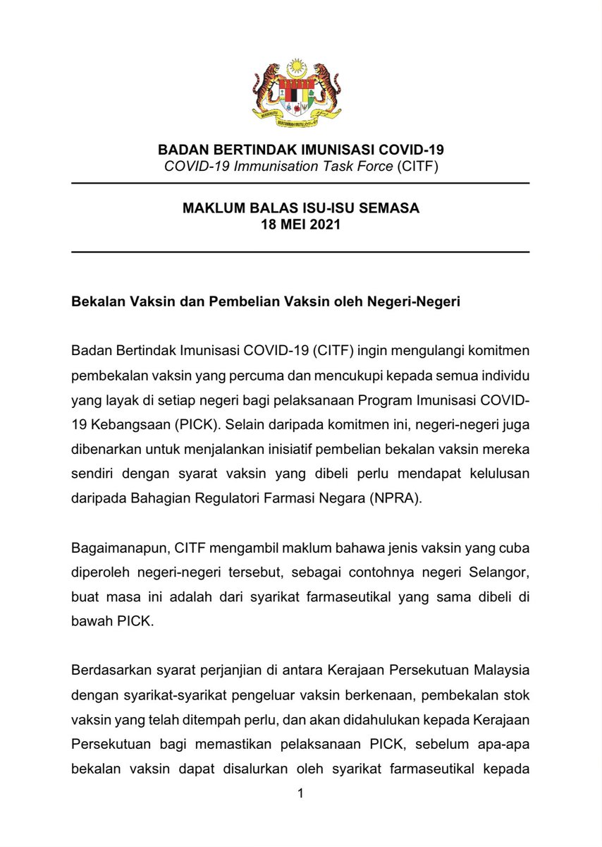 Khairy Jamaluddin On Twitter Official Update On The National Covid 19 Immunisation Programme Pick Including Procurement By States Donations Of Vaccines Dosing Intervals Housekeeping Matters Https T Co Nz1kiqd8sq Https T Co Lpmatpvwyr
